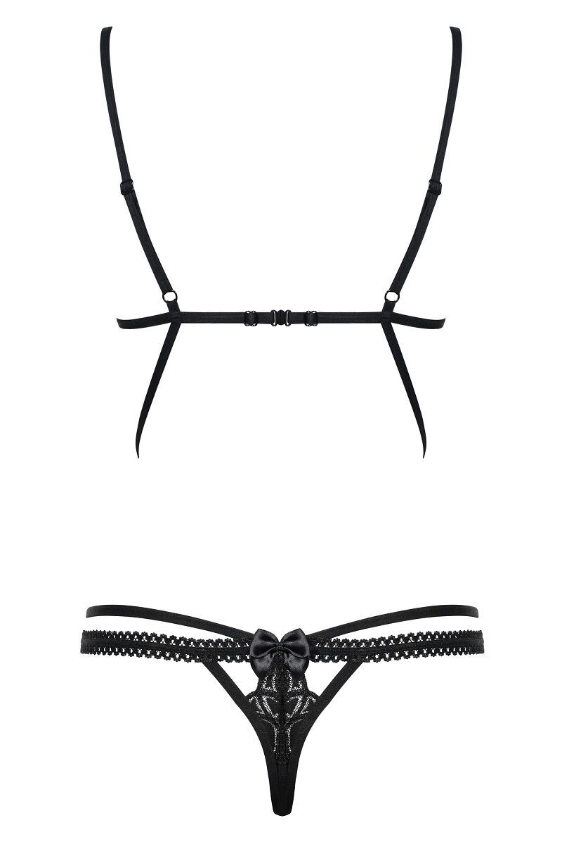 Чувственное боди, бюстгальтер и трусики выполнены из кружева, их соединяют эластичные бретели, застежка у бюстгальтера на крючках, бретели регулируются по длине.
