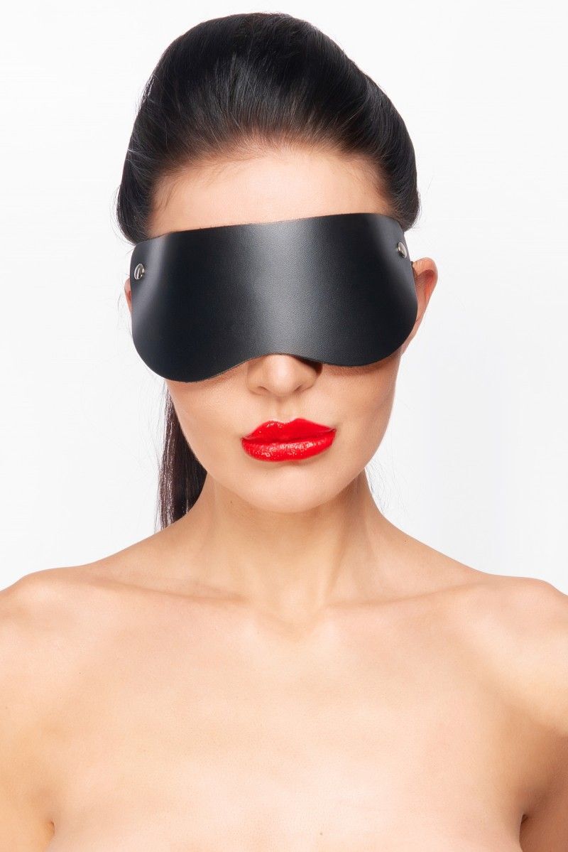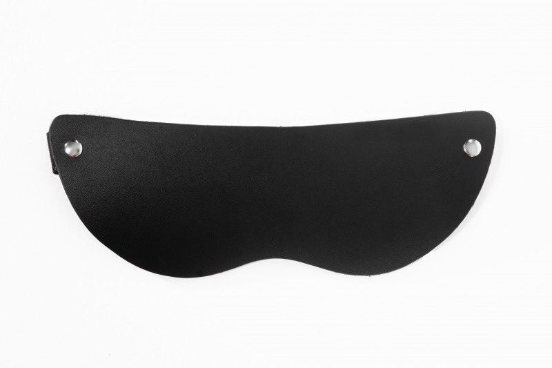 Черная кожаная маска без прорезей для глаз.