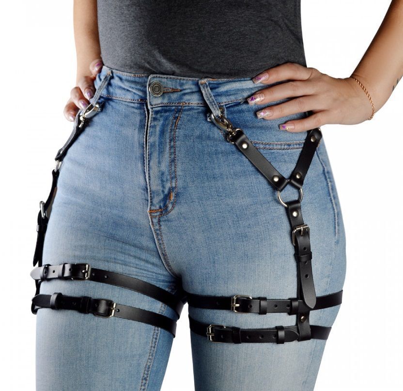Гартеры Калипсо изготовлены из натуральной кожи и имеют металлические карабины для фиксации на джинсах/брюках. Гартеры регулируются при помощи металлических пряжек.