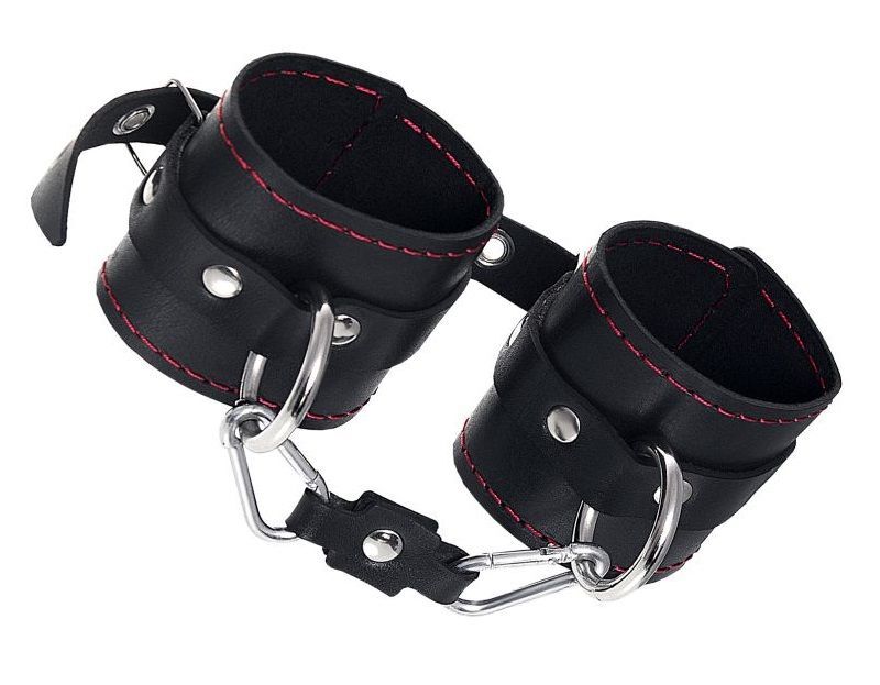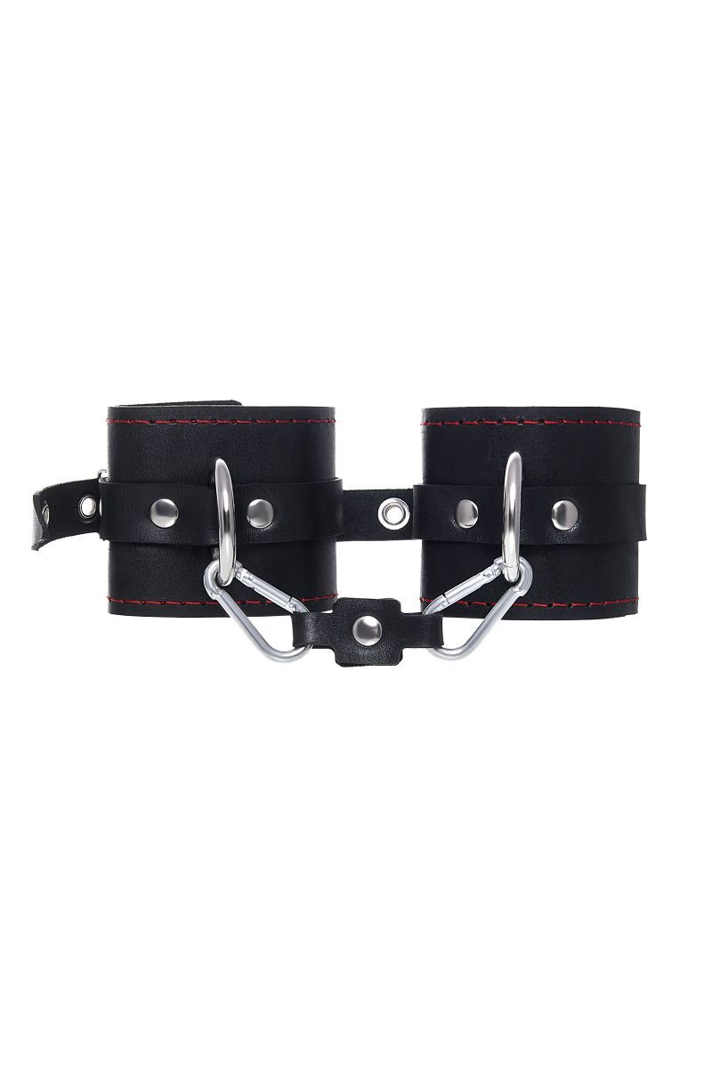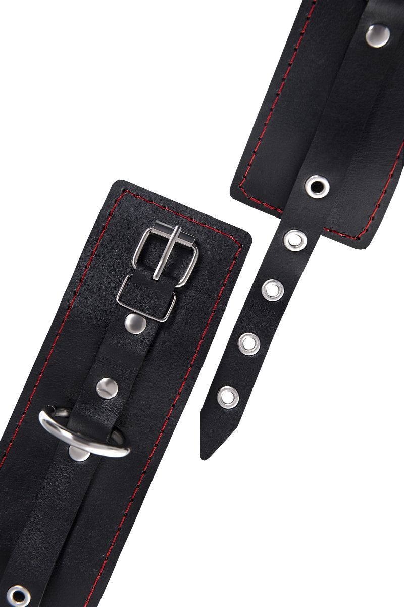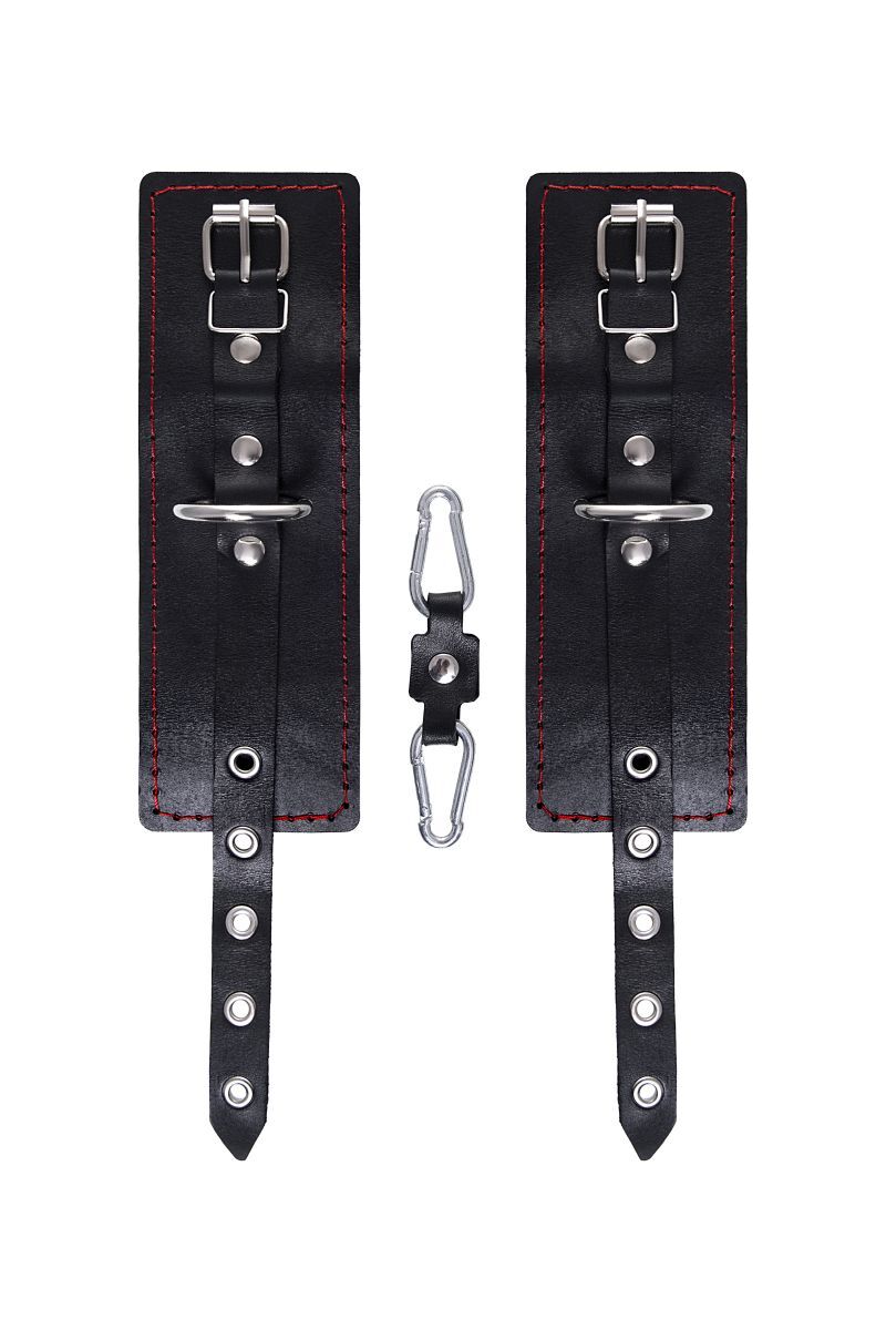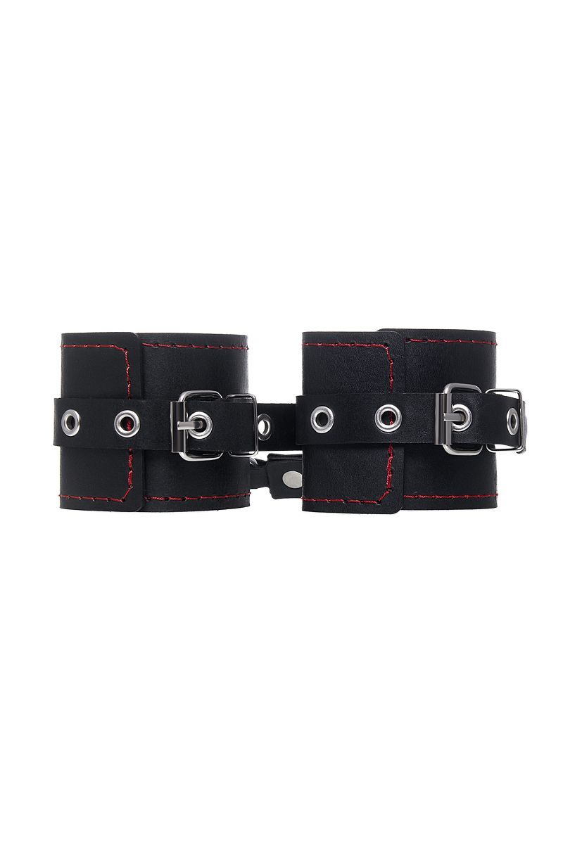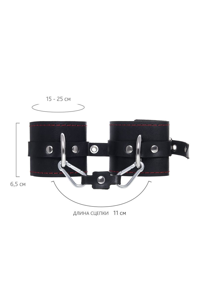 Позвольте своим желаниям вырваться наружу! Вместе с наручниками от Impirante. Дерзкий атрибут для БДСМ-игр изготовлен из черной натуральной кожи. Прочный материал декорирован металлической фурнитурой и ровными стежками возбуждающего красного цвета. Стильные люверсы по всей длине регулируют захват запястья. Зафиксировать и обездвижить руки сабмиссива помогает короткая стальная цепь. Благодаря наличию двух карабинов и колец в комплекте, аксессуар можно использовать раздельно, как манжеты. А также присоединять другие атрибуты для Вашей игры. Ширина манжет - 6,5 см. Длина сцепки - 11 см.