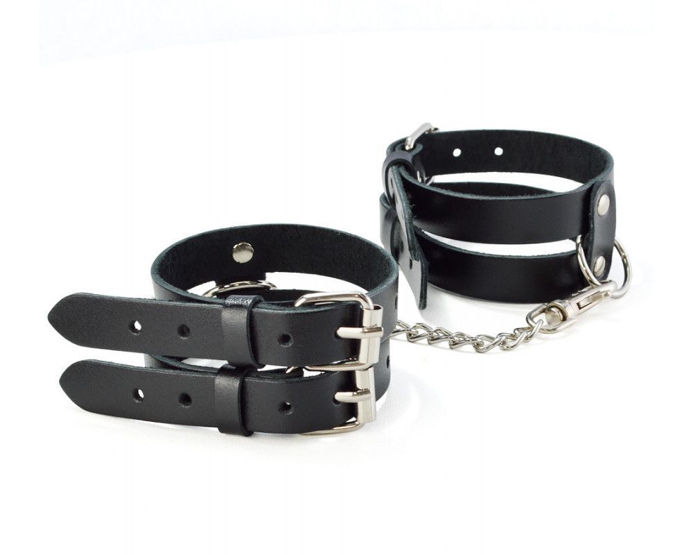Оковы изготовлены из натуральной кожи. Фурнитура никелированная. Регулируется при помощи пряжки.