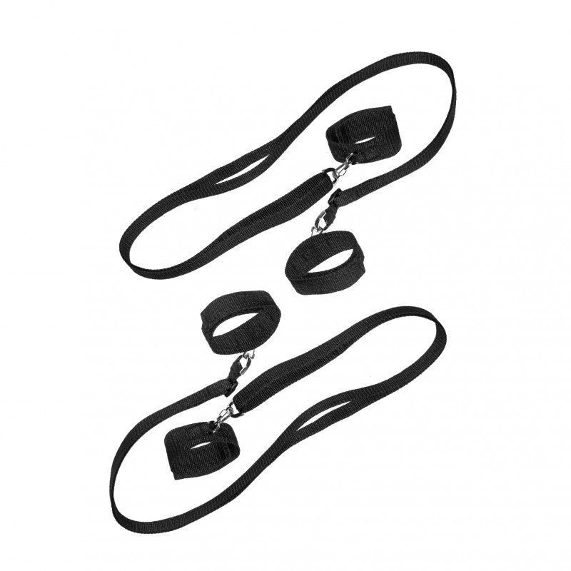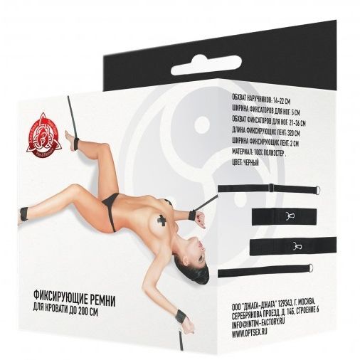 Бондажный набор на кровать позволит ограничить подвижность партнера, сделав его покорным рабом в руках умелого господина, а также поможет зафиксировать тело в позе, удобной для секса, для реализации тайных фантазий, став отличным дополнением для достижения удовольствия и помогая раскрыть новые грани в интимных отношениях. Преимуществами бондажного набора являются: -Надежность. Для изготовления аксессуара применяются прочные и устойчивые к разрыву материалы. Вы не порвете его, даже если очень постараетесь. Крепкие ремни и металлические крепления способны выдерживать любые нагрузки. -Безопасность. Материал, из которого изготавливается аксессуар, не вызывает раздражение на коже. После развлечений в постели на Вашем теле не останется никаких следов и красных пятен, даже если у Вас есть склонность к аллергии. -Универсальность. Обхват фиксаторов для ног и для рук легко регулируется при помощи застежки-липучки. Ленты легко регулируются до нужной Вам длины. Ширина наручников - 5 см., обхват - 14-22 см. Ширина фиксаторов для ног - 5 см., обхват - 21-36 см. Длина фиксирующих лент - 400 см., ширина - 2 см.