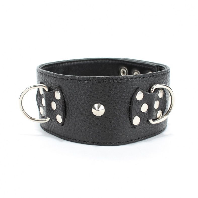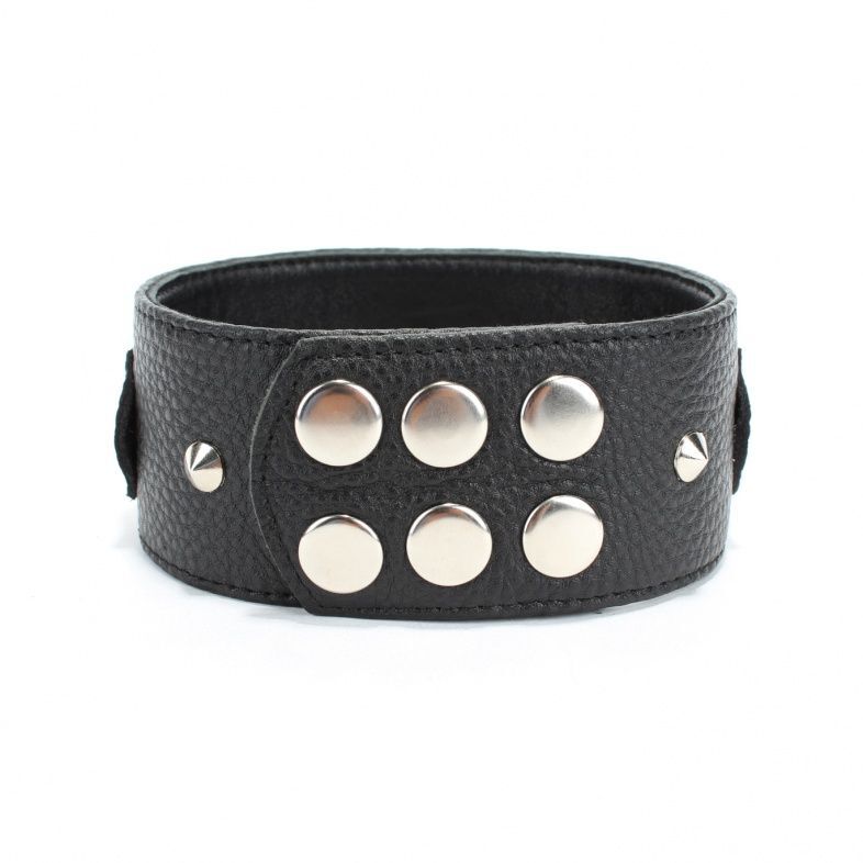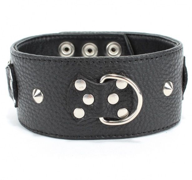 Ошейник выполнен из натуральной кожи черного цвета, декорирован заклепками и вставками в виде бабочек. Ошейник фиксируется металлическими кнопками, позволяющими подобрать нужный размер, подойдет на обхват от 32 до 37 см. Стильный аксессуар украсит любую вашу фантазию. Ширина - 5 см.