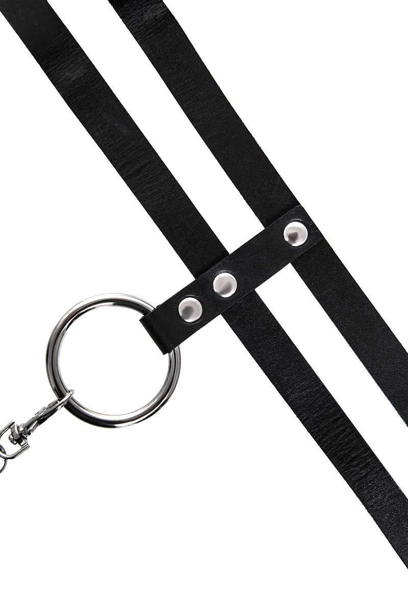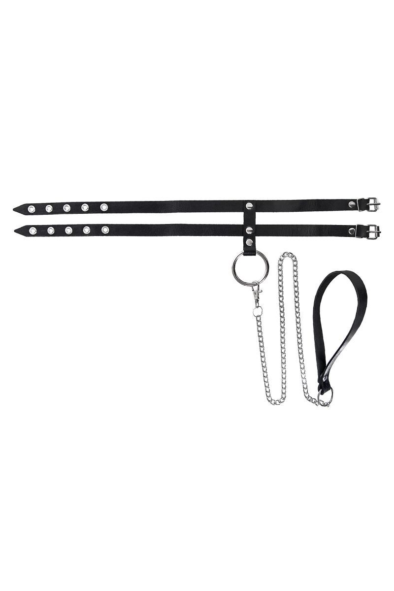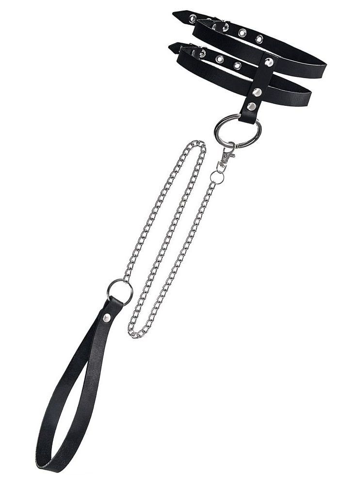 Стильная и надежная эмблема подчинения – ошейник из двух ремешков производства Impirante. Материал изделия - чёрная натуральная кожа, который не раздражает поверхность тела. Атрибут обеспечивает хорошую посадку на шее. Комфортно фиксируется под нужный размер, благодаря пяти люверсам и крепкому замку. К стальному кольцу, с помощью карабина крепится надежный поводок. Ширина ошейника - 4,9 см. Длина поводка - 80 см.