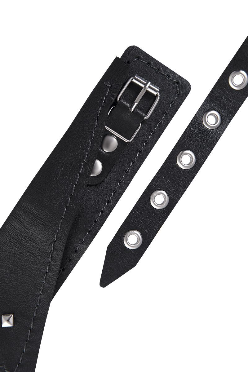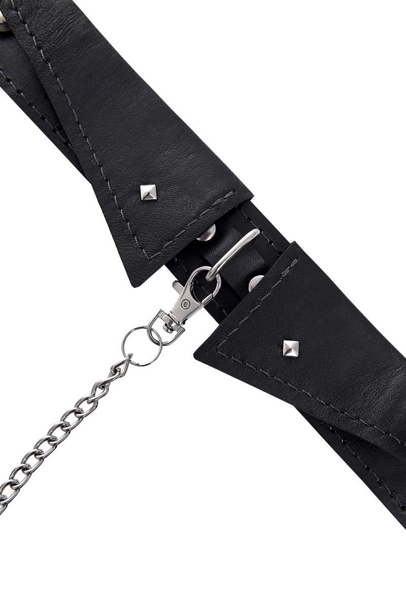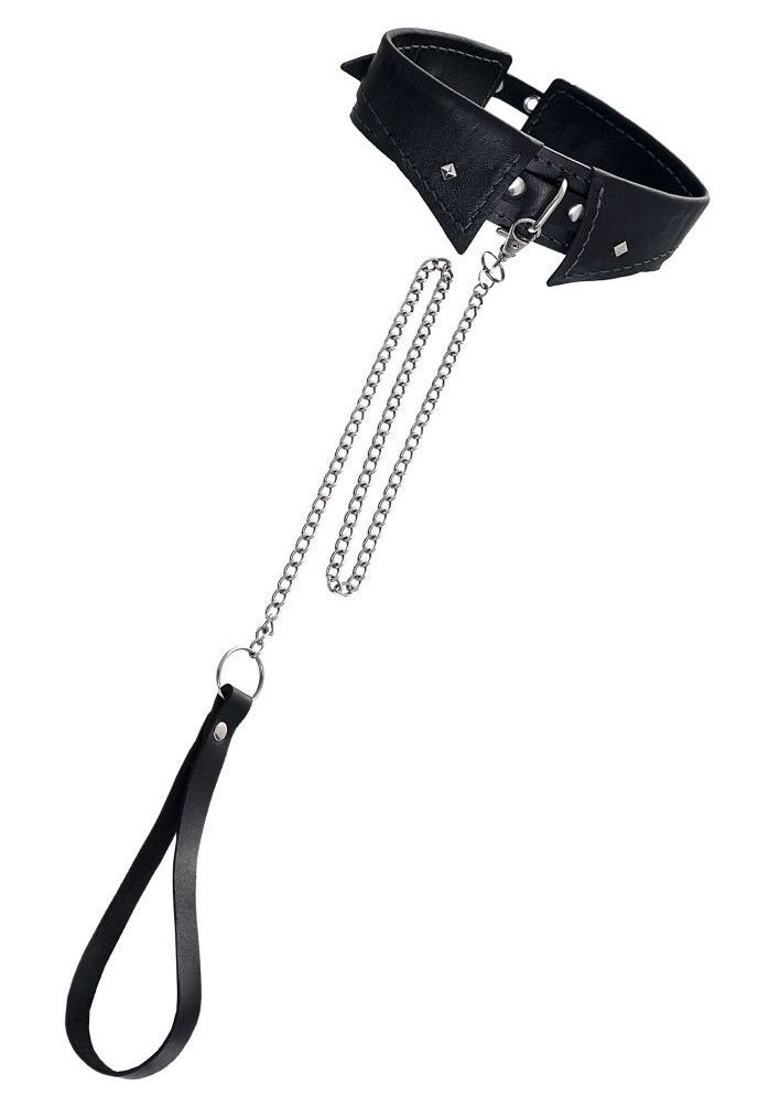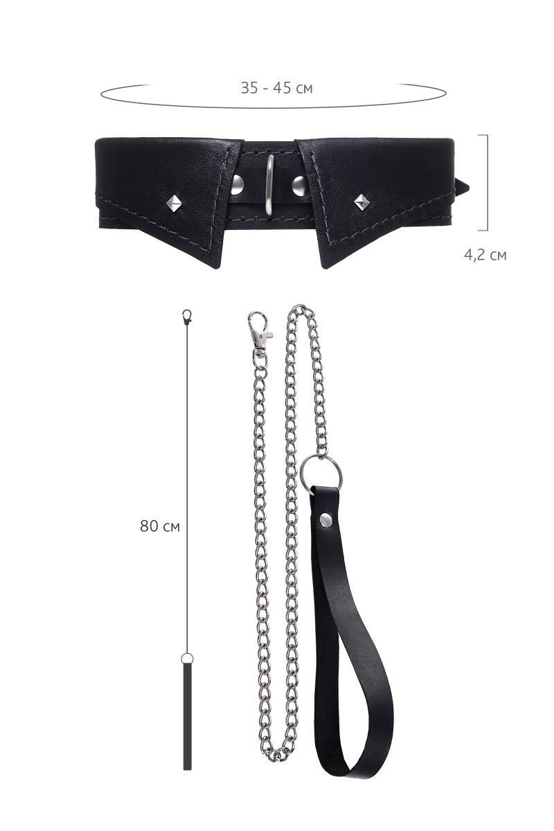 Владеть и контролировать не только в Ваших фантазиях, но и в реальности можно с ошейником-воротником от Impirante. Символ подчинения изготовлен из натуральной качественной черной кожи. Жесткая внутренняя выделка поверхности девайса придает дополнительные острые ощущения. В комплект входит поводок из металлической цепи и кожаной ручки. Для полного удобства во время игр поводок крепится стальным карабином к кольцу на ошейнике. К этому металлическому кольцу также можно соединить и другие аксессуары. Не важно, кто в Вашей БДСМ-сессии нижний: атрибут обладает универсальным размером, и хорошо подходит и женщинам, и мужчинам. Размер кожаного воротника комфортно регулируется удобной пряжкой. Ширина ошейника - 4 см. Длина поводка - 82 см.