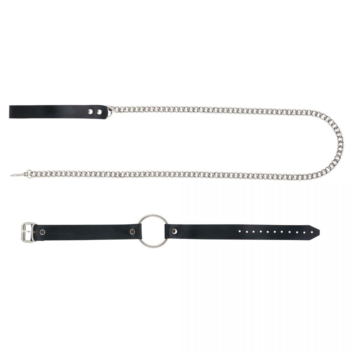 Металлический поводок с кожаной ручкой и чокер с кольцом идеально подходит для контроля над партнером. Пристегните поводок к чокеру и дайте волю своему воображению. Чокер также можно носить как отдельный аксессуар. Длина чокера - 52 см., ширина - 2,5 см. Длина цепочки - 100 см., внешний диаметр кольца - 6 см., диаметр отверстия - 5 см.