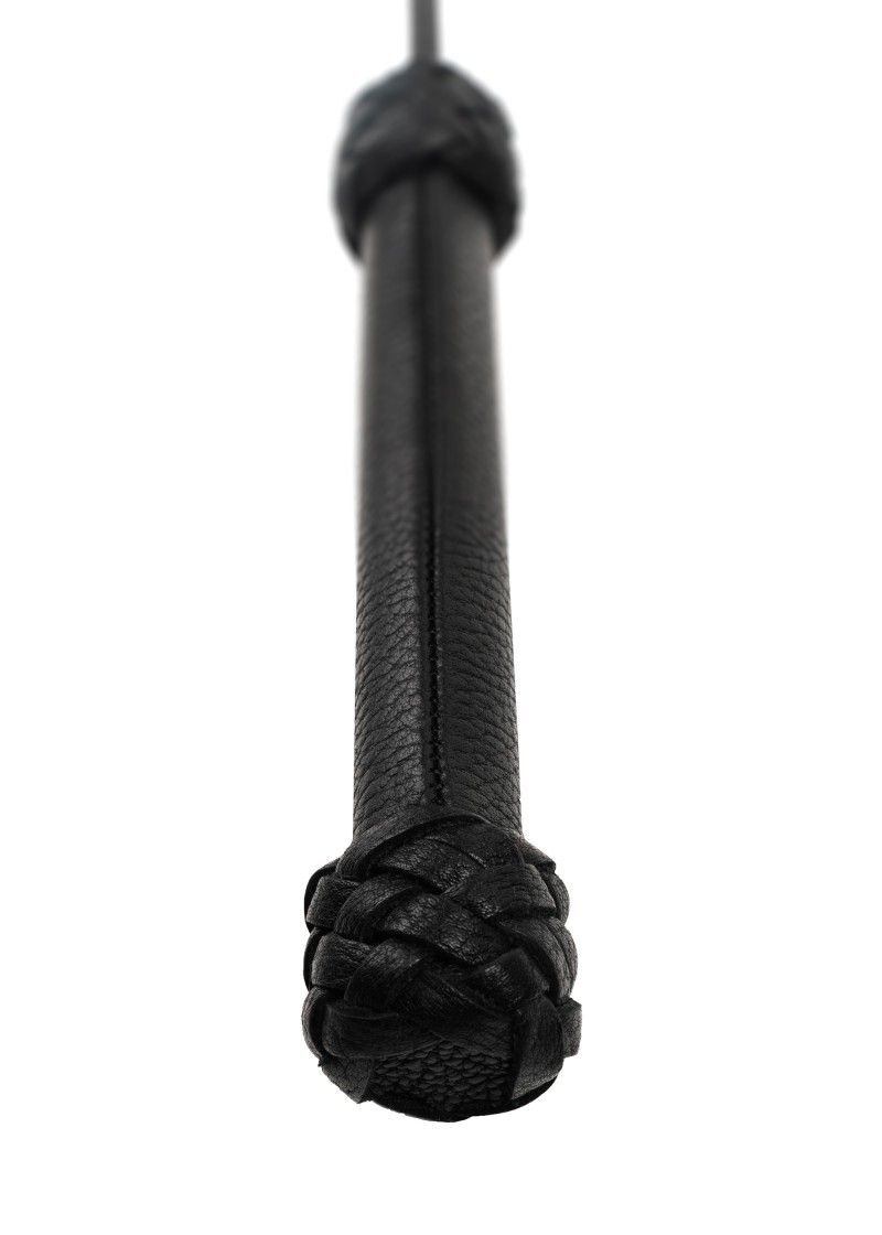 Хлесткий и изящный стек, который берет начало с лошадиных дерби, послужит прекрасным дополнением к образу строгой, но в тоже время элегантной госпожи в ролевом костюме или комплекте белья. Такая плеть, может быть использована как для легких, однако весьма ощутимых шлепков, вызывающих прилив крови к эрогенным зонам, так и для указания направления движения нижнего или его положения во время БДСМ-игр. Гладкая ручка декорирована по краям кожаным плетением. Основательная хлопушка стека изготовлена из натуральной кожи высокого качества. Хлопушку и рукоять соединяет длинный, упругий, но прочный хлыст. Ширина шлепка - 4 см.