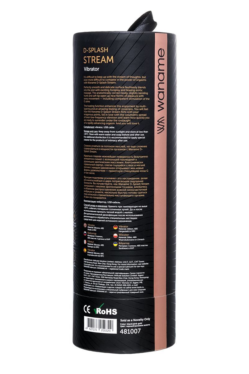 Сложно угнаться за потоком мыслей, но еще сложнее соревноваться в мощности оргазмов с Waname D-Splash Stream. Благодаря изогнутому стволу этого вибратора, его увеличенной головке и функции подогрева бурная энергия возбуждения достигает кульминации с завидным постоянством, особенно когда он снова и снова находит труднодоступную точку G. Идеально гладкая нежнейшая поверхность безупречно вливается в сюжет с волнующей прелюдией и дразнящим эротическим массажем. Анатомически правильный корпус, слегка гнущийся ствол и мягкий кончик с каждым движением открывают вам новые формы удовольствия — грамотную стимуляцию зоны G в том числе. Функция подогрева усиливает это наслаждение, делая его многослойным и даря потрясающее ощущение близости. Вы почувствуете, как Waname D-Splash Stream заигрывает с вашими эрогенными точками, влюбитесь в объемное распространение ровной низкочастотной вибрации и узнаете, насколько быстро готовы сдаться под натиском стремительно наступающего оргазма. И вам это понравится. Функция подогрева. Слегка гнущийся изогнутый ствол и мягкий кончик. 3 режима вибрации + 7 программ пульсации. Интуитивно понятное управление. Ультранежная поверхность из мягкого «жидкого» силикона. Мощный мотор с низкочастотной вибрацией. Влагостойкий. USB-зарядка. Световая индикация кнопок. Беспрерывная работа на самой большой скорости — 1 час.