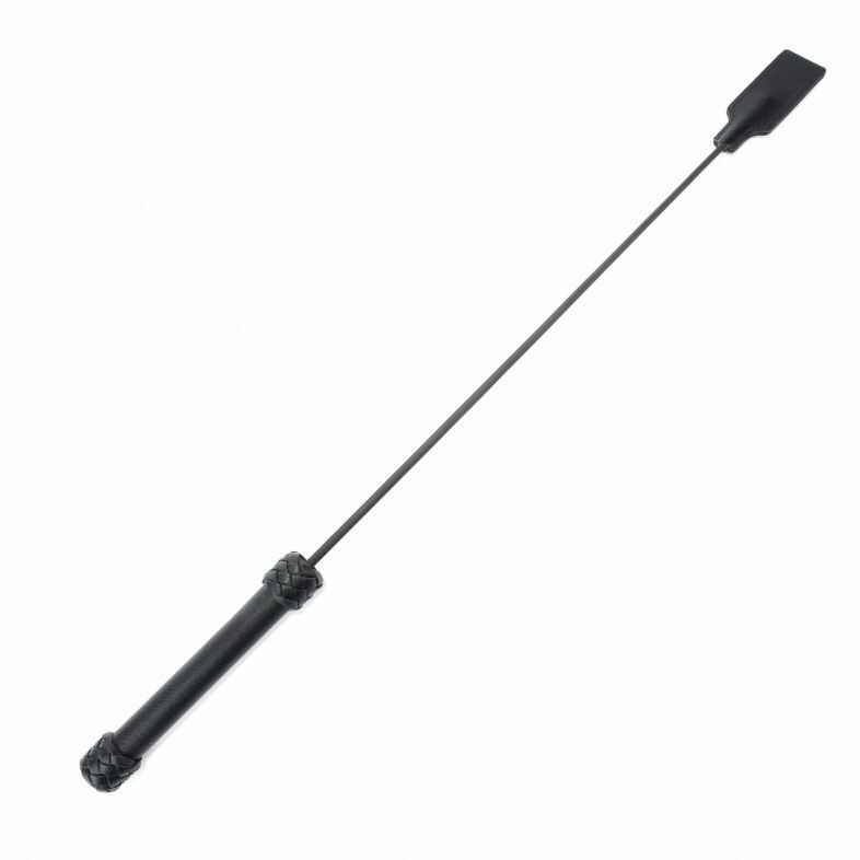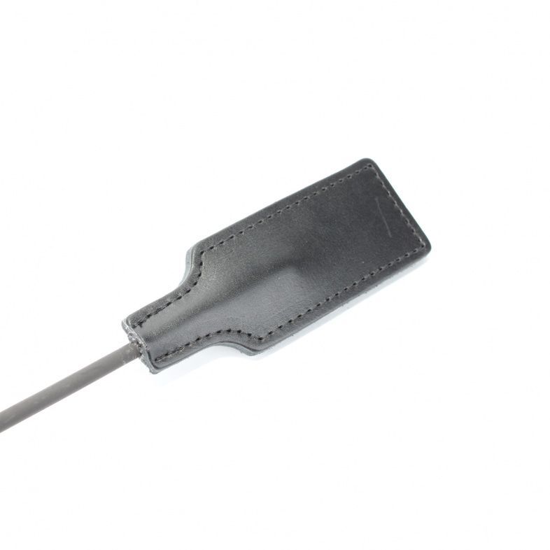 Рукоятка стека выполнена из натуральной кожи черного цвета с плетением, на конце девайса расположен кожаный шлепок. Гибкий и надежный стек доставит максимальное удовольствие партнерам от БДСМ игры. Размеры хлопушки - 8 х 4 см. Длина рукояти - 20 см.