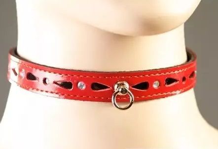 Ошейник декоративный со стразами и колечком. Стильный, утонченный ошейник из натуральной кожи превосходного качества. Оформлен россыпью страз белого цвета и каплевидным резным рисунком. Замок - липучка. Ширина - 1,5 см.
