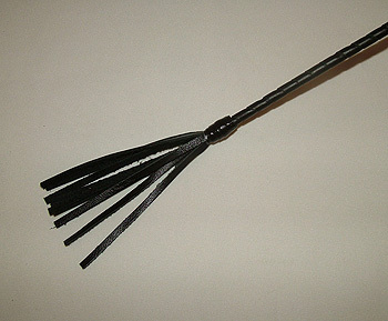 Стек состоит из гибкой основы,овитой натуральной кожей черного цвета,наконечника-кисточки и удобной рукояти с петлей для надевания на руку (темляк). Длина кисти - 10 см.