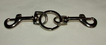 Два карабина с кольцом могут использоваться для соединения наручников и поножей, а также других девайсов БДСМ-тематики.Стяжка выполнена из прочного металла. Готовясь к жарким играм в стиле БДСМ, не стоит забывать о таких мелочах. Ведь надежное крепление имеет особое значение для комфорта и безопасности.