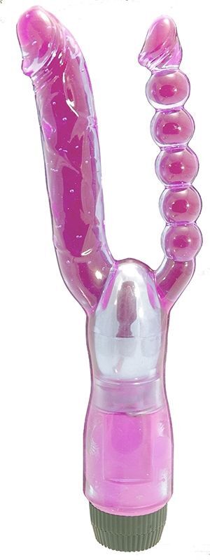 Этот стимулятор позволит вам понять в полной мере, каким сладким может быть двойное проникновение. Один отросток – гладкий фаллос с чуть загнутой головкой, второй – анальная ёлочка из сросшихся друг с другом шариков. Введите одновременно оба отростка в глубины вашего тела, чтобы получить максимальное удовольствие. Мощная вибрация, распространяющаяся по всей длине стимулятора, значительно приумножит наслаждение. Длина вагинального отростка - 13 см., диаметр - 2,5 см. Длина вагинального отростка - 13 см., диаметр - 2 см.