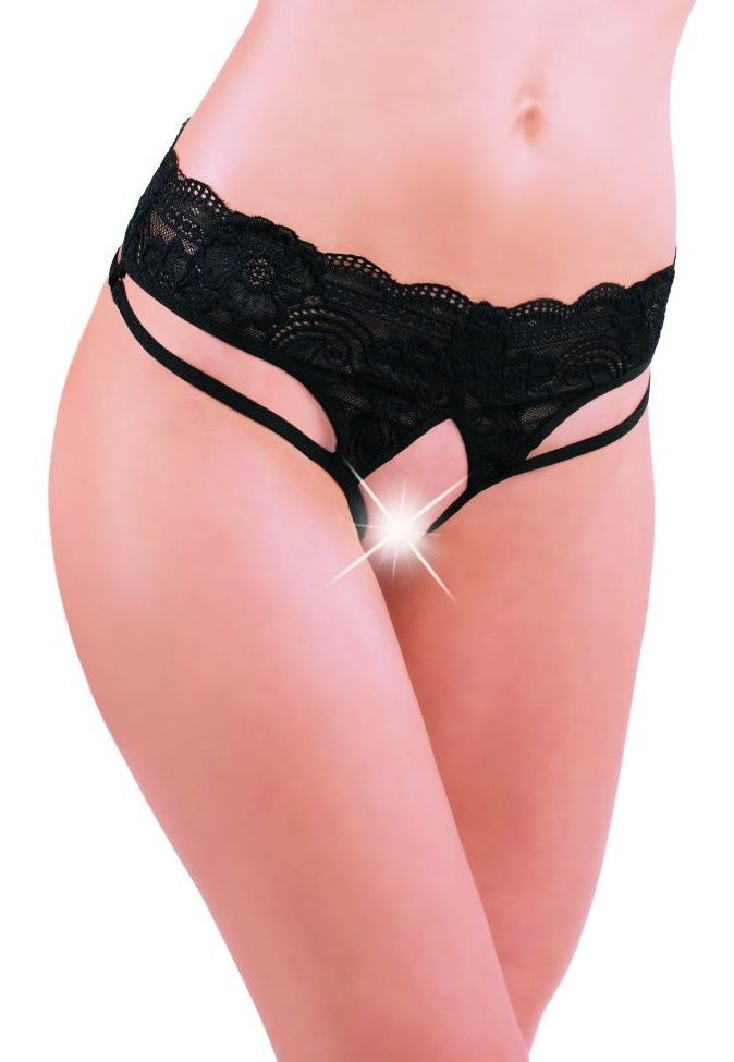 Женские кружевные трусы-стринги со стреп-лентами с интимным доступом.