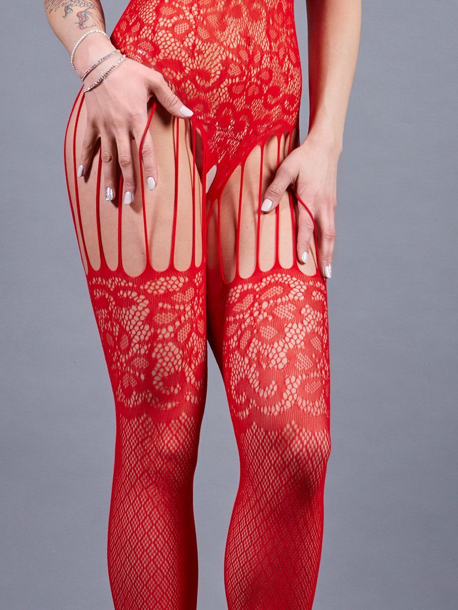 Боди-комбинезон с имитацией чулок. Нежный, приятный на ощупь материал позволит вам чувствовать себя комфортно, а уникальный дизайн модели не даст отвести от вас взгляд. Благодаря уникальному пошиву и дизайну боди-комбинезон визуально стройнит фигуру, а также подчеркивает все самые аппетитные части тела.