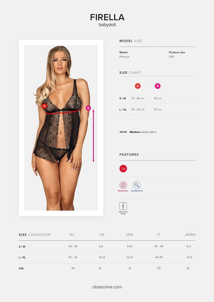 Cорочка-беби-долл Firella выполнена из полупрозрачной сеточки в сочетании с оригинальным кружевом. Чашки мягкие без косточек. Бретели регулируются по длине. В комплекте: сорочка и трусики-стринги.
