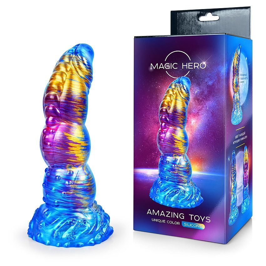 Экзотический фаллоимитатор воплотит в жизнь самые сокровенные эротические фантазии! Его необыкновенный дизайн и космическая цветовая гамма завораживают, а оригинальная изогнутая форма дарит незабываемые сексуальные ощущения. Мощный ствол даёт приятное чувство наполненности, а рельефная поверхность обеспечивает дополнительный стимулирующий эффект. Изогнутый кончик позволяет стимулировать точку G. Широкая присоска надёжно крепит изделие к ровной горизонтальной или вертикальной поверхности. Игрушка изготовлена из упругого материала, хорошо гнётся в разные стороны, что позволяет использовать её в различных положениях. Рабочая длина - 18,5 см.