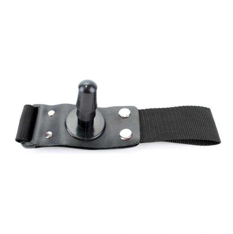 Аксессуар выполнен из черной натуральной кожи спереди и ранцевой ленты на липучке, фиксируется на бедро. Подойдет на обхват от 38 до 50 см. Штырек харнесс надежно крепится на кожаную подложку кнопками. Аксессуар позволяет в полной мере насладиться сексом в стиле БДСМ. Ширина ленты - 5 см.