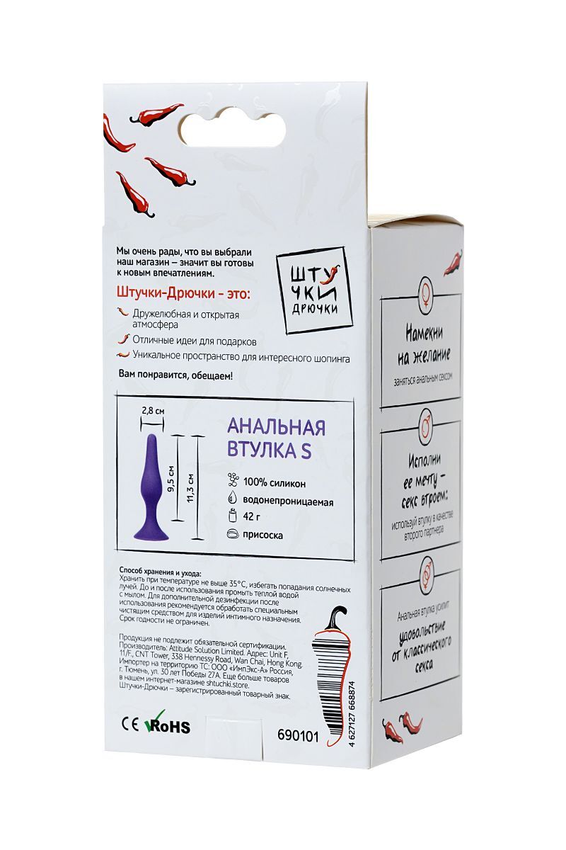 Откройте новые ощущения с анальными пробками Штучки-Дрючки! Она выполнена из безопасного, долговечного и простого в уходе высококачественного 100 % медицинского силикона. Игрушка разработана специально для новичков в области анальных удовольствий. Узкий кончик максимально облегчает ввод, а ограничительное основание в виде присоски делает ее безопасной в использовании и позволяет надежно закреплять на плоских поверхностях. С анальными пробками Штучки-Дрючки незабываемое удовольствие вам гарантировано! Рабочая длина - 9,5 см.
