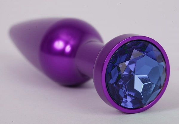 Фиолетовая анальная пробка с синим стразом - 11,2 см.