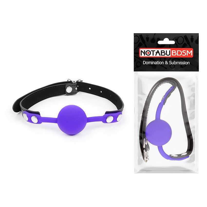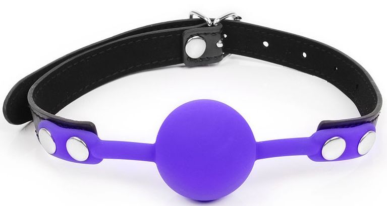 Фиолетовый кляп-шарик с черным ремешком
