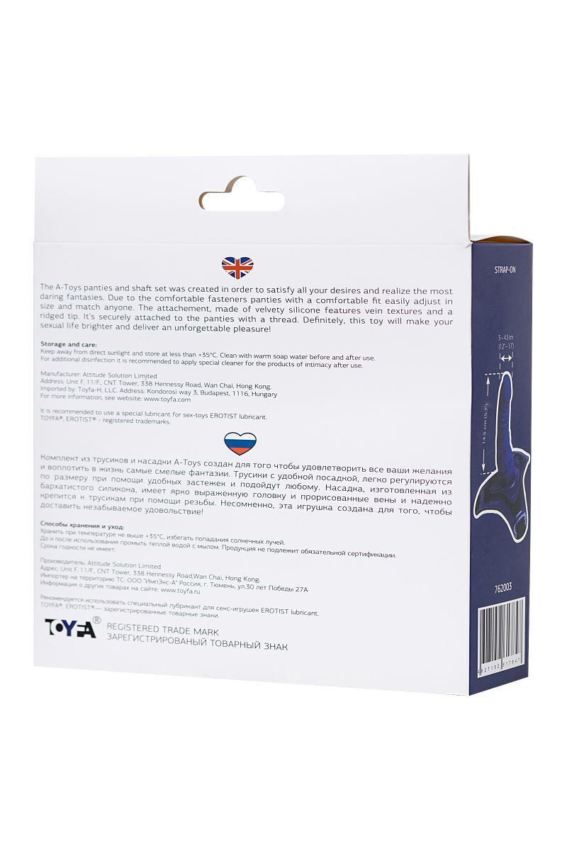 Комплект из трусиков и насадки A-Toys создан для того чтобы удовлетворить все ваши желания и воплотить в жизнь самые смелые фантазии. Трусики с удобной посадкой, легко регулируются по размеру при помощи удобных застежек и подойдут любому. Насадка, изготовленная из бархатистого силикона, имеет ярко выраженную головку и прорисованные вены и надежно крепится к трусикам при помощи резьбы. Несомненно, эта игрушка создана для того, чтобы доставить незабываемое удовольствие! Минимальный диаметр - 3 см.