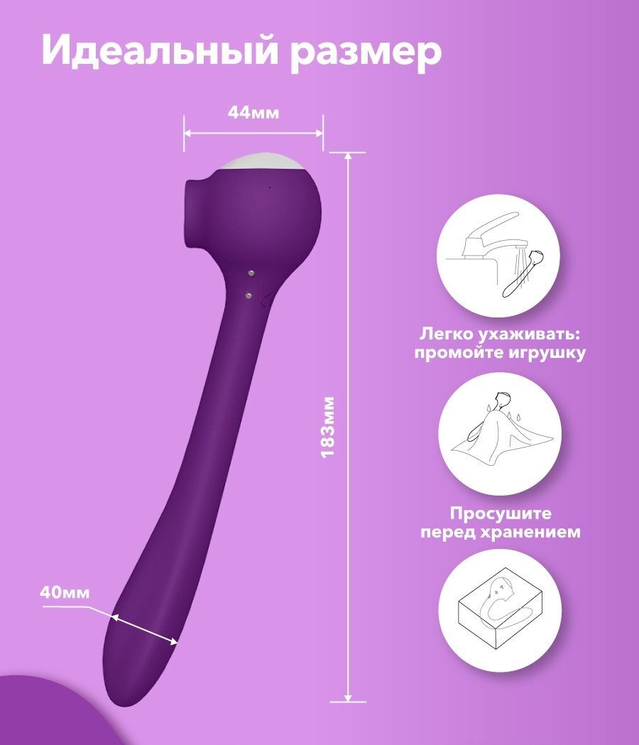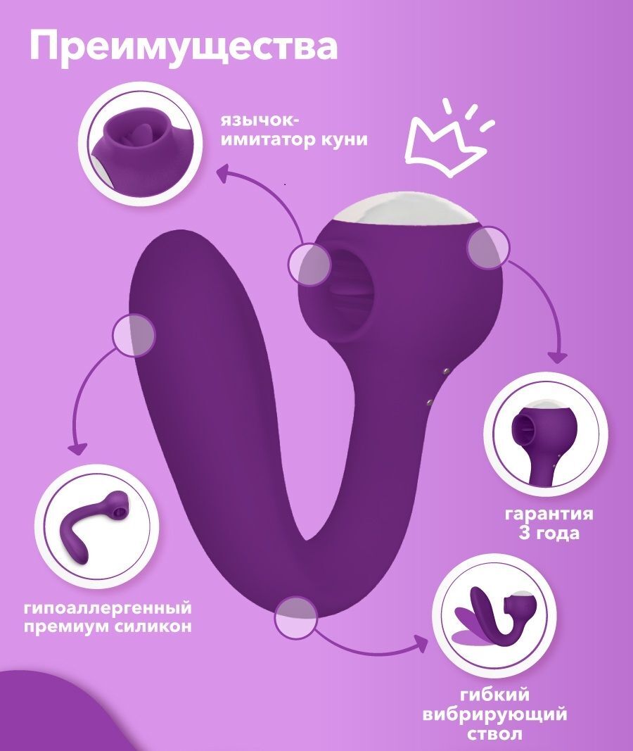 Игрушка-ХИТ для любительниц оральных ласк! Сатисфакер Drago является универсальным вибратором. В нем есть функция, имитирующая оральный секс и гибкий ствол для одновременной стимуляции точки G - незабываемое наслаждение, которого хочется вновь и вновь! Функциональность. Вибратор позволяет вам проявить фантазию и использовать его одновременно для клиторальной и вагинальной стимуляции. Или раздельно, или как эрекционное кольцо. Он может стать хорошим помощником при сексе с партнёром, усиливая ощущения, лаская ваши чувствительные зоны. Вашу фантазию ничего не сдерживает, ведь вибратор сгибается под любым углом. Дизайн. Игрушка мало похожа на интимную игрушку. У неё яркий цвет и интересная, удобная в использовании форма. Материал. Стимулятор сделан из безопасного гипоаллергенного силикона премиум класса. Он не вызывает раздражения и очень приятен на ощупь. Режимы. В игрушке 3 лизательные функции и 8 вариантов вибрации. Вам не придётся скучать. Язычок просто творит чудеса! Водонепроницаемость уровня IPX7. Это значит, что игрушку можно погружать на глубину до 1 метра на полчаса и смело использовать под душем. Мощность. Этот вариант подходит девушкам с разным уровнем чувствительности. Шум. Сатисфакер практически бесшумный, меньше 50дБ. Вы, получающая от него удовольствие, будете шуметь намного больше. Магнитная зарядка. Заряжается игрушка с помощью магнитной зарядки от любого устройства, имеющего USB вход. Час заряжаете - час получаете оргазмы. Гарантия. Производитель даёт 3 года гарантии на то, что игрушка будет исправно приносить вам удовольствие. Сатисфакер Drago станет приятным подарком для любой девушки или пары, которой не чужды эксперименты!