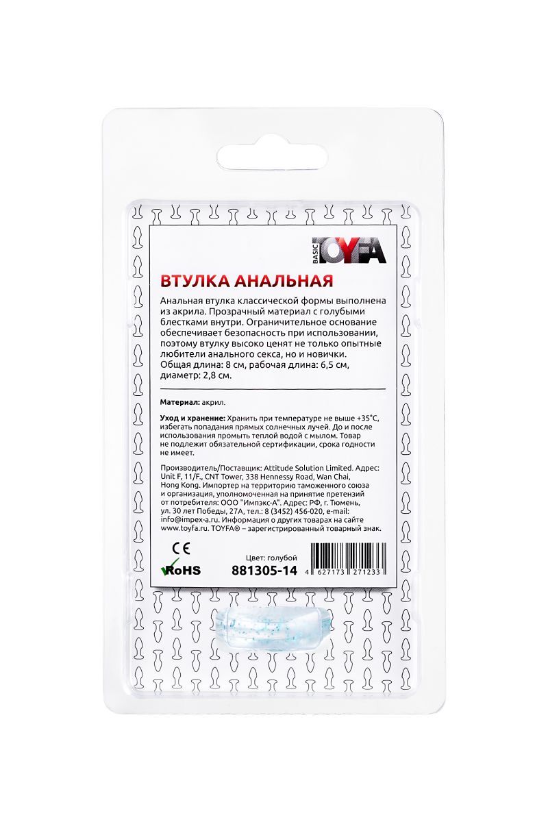 Анальная втулка классической формы выполнена из акрила. Прозрачный материал с золотистыми блестками внутри. Ограничительное основание обеспечивает безопасность при использовании, поэтому втулку высоко ценят не только опытные любители анального секса, но и новички. Рабочая длина - 6,5 см.
