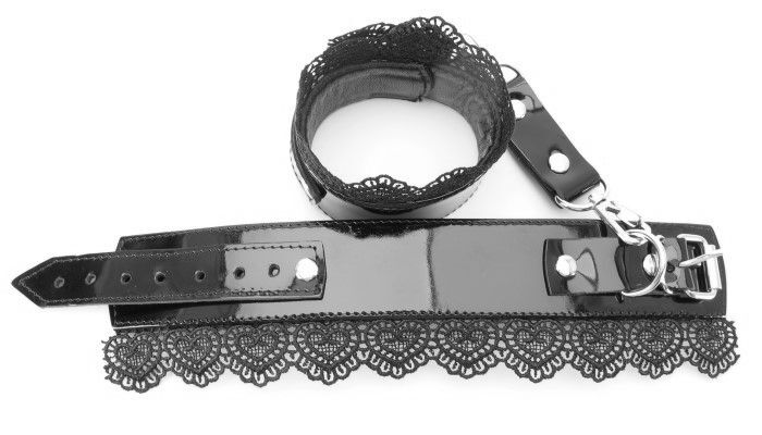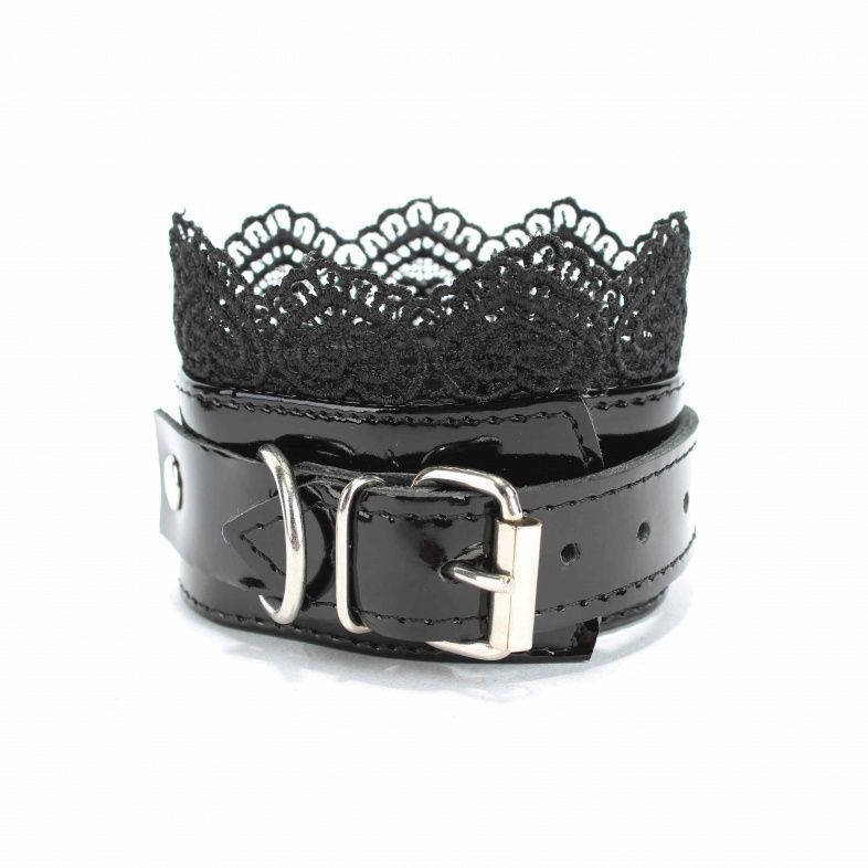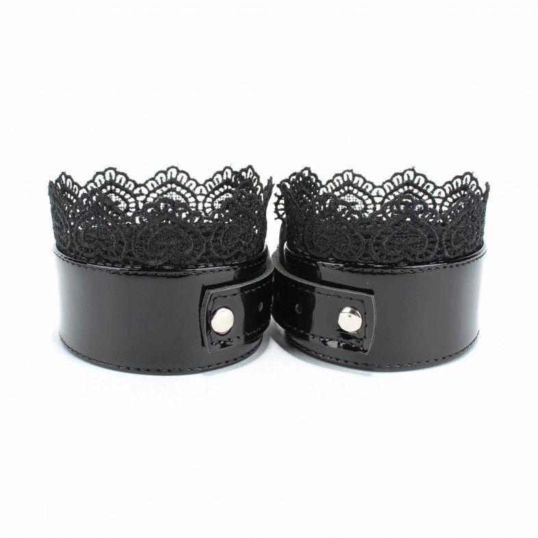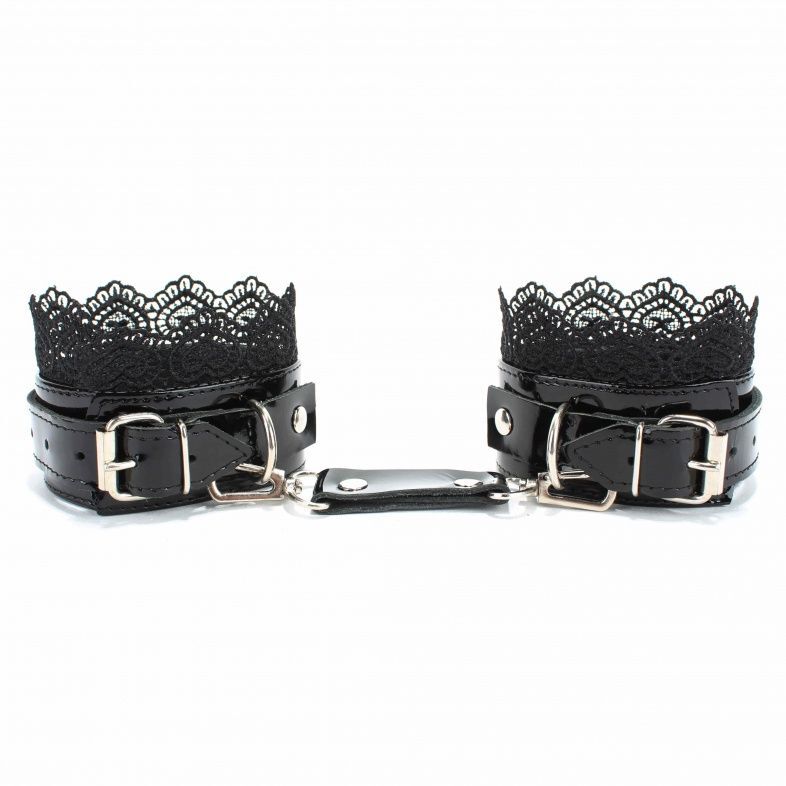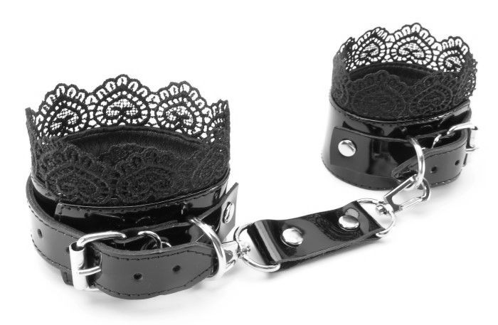 Оригинальные наручники с черным кружевом, выполненные из натуральной лакированной кожи черного цвета. Наручники надежно фиксируются пряжками и ремнями, позволяющими выбрать нужный размер, подойдут на обхват от 19 до 28 см. Кожаное соединение на карабинах фиксирует наручники вместе. Мягкий подклад из перчаточной кожи обеспечит комфортное пребывание в образе. Покорность еще никогда не была такой сладкой и волнующей. Ширина кожаной части - 3,5 см. Длина соединения - 14 см.