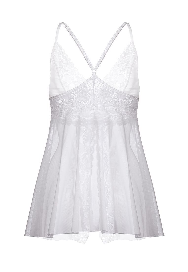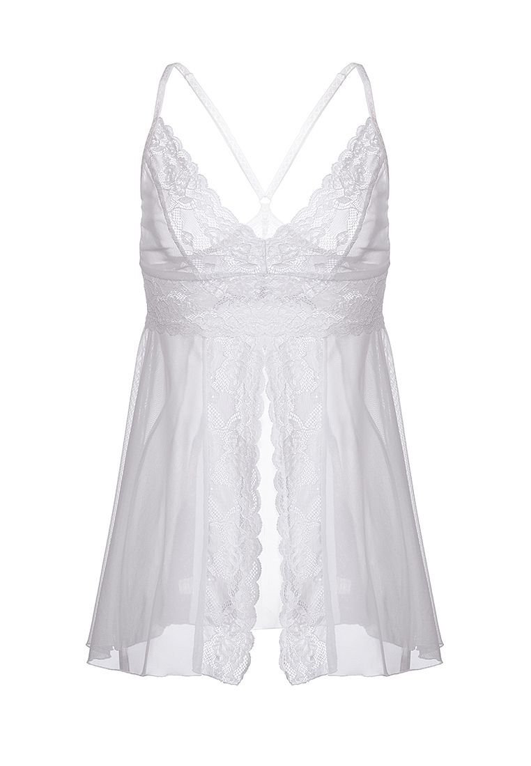 Комбинация Nataliya от Erolanta с соблазнительным V-образным декольте и манящим разрезом спереди — неприлично роскошный вариант для эффектного соблазнения. Силуэт бэби-долл придает образу легкость и очаровательную наивность. Эластичная прозрачная сетка в сочетании с нежным кружевом интригующе подчеркивает сексуальность женского тела. Глубокий вырез на груди и провокационный разрез спереди приковывают внимание. Тонкие регулируемые бретели и кружево изящно обрамляют спину.
