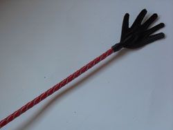 Короткий красный плетеный стек с наконечником-ладошкой - 70 см.