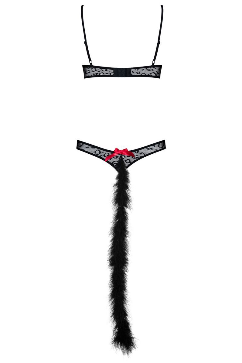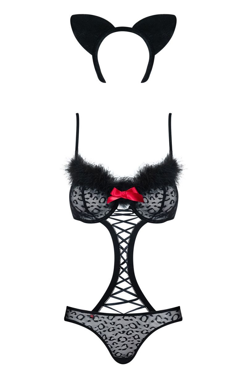 В каждой женщине живёт кошка — независимая, своенравная, но умеющая быть ласковой и нежной. Так почему бы не показать мужчине то, что скрыто, сегодня вечером? Этот костюм идеален: ничего лишнего, ничего сверх меры! Красивое декольте, открытая спинка и заигрывающий хвостик выведут из равновесия любимого! Мяу! Сексуальный костюм дикой кошки cостоит из тедди с хвостом и опушкой, а также ушек на голову. В комплекте: тедди, ушки.