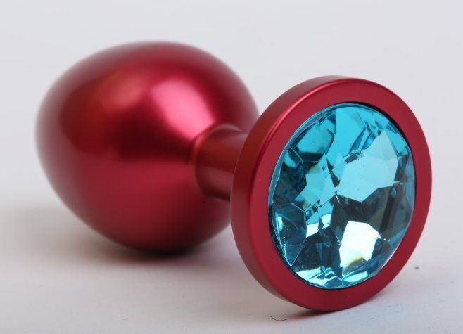 Красная анальная пробка с голубым стразом - 8,2 см.