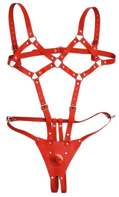 Красная кожаная сбруя Боди харнес