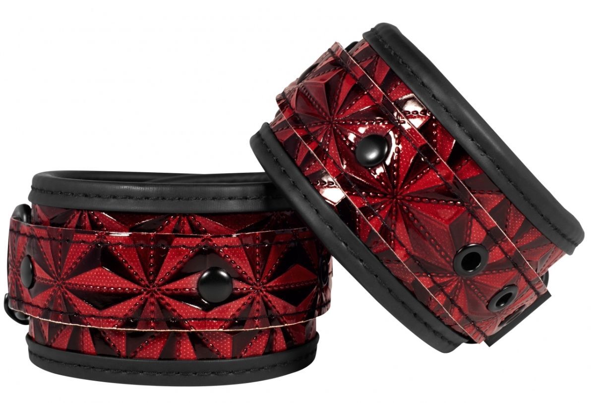 Наручники для рук и ног Luxury Hogtie – универсальные оковы для рук и ног с крестообразным соединением для обездвиживания партнера во время эротических ролевых игр и практик БДСМ. Они выполнены из эффектного тисненого винила с мягкой и прочной неопреновой подкладкой, которая обеспечивает нежное прикосновение и не раздражает даже чувствительную кожу. Каждый манжет оснащен металлическим D-кольцом из анодированного железа, к которому можно с помощью универсального карабина прикрепить крестообразное соединение, состоящее из четырех коротких ремешков, соединенных вместе на центральном кольце. Длина соединения - 27,2 см. Обхват наручников - 21-31 см., ширина - 5 см. Обхват наножников - 47-57 см., ширина - 5,5 см.