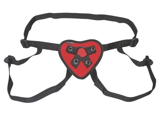 Трусики-джоки с регулирующимся с помощью пряжек размером. На красном мягком сердце - 2 кольца разного размера для крепления стимуляторов. Диаметр колец - 4 и 3 см.