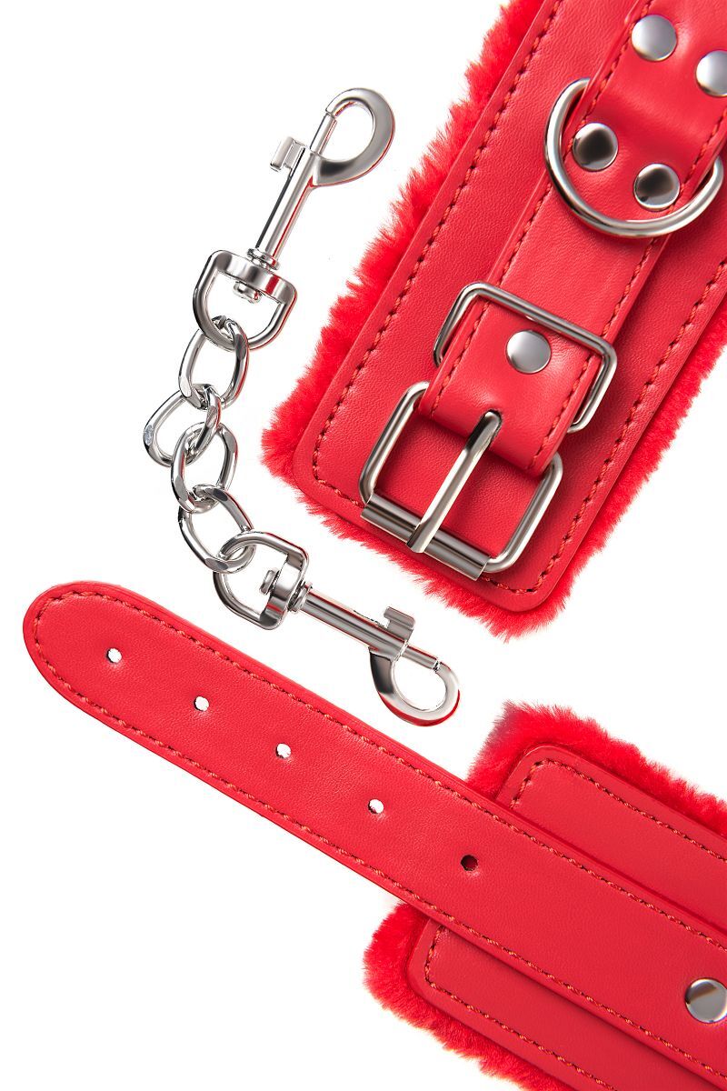 Наручники яркого красного цвета с металлической отделкой говорят вовсе не об агрессии. Эти произведения искусства говорят о страсти, которую можно проявить, но только с разрешения Доминанта. Подклад из искусственного меха делает ношение этих наручников более комфортным, но расслабиться в них не получится – цепочка на карабинах сильно ограничивает свободу действий. Длина наручников позволяет использовать их практически на любой размер рук. Отрегулировать размер и силу обхвата легко с помощью ремешка и металлической пряжки. Наручники – классический предмет для игры в подчинение, обязательный для начинающих и опытных поклонников БДСМ. Дополните комплект аксессуарами – ошейником, кляпом, оковами и продемонстрируйте что значит грубое обращение и полный контроль над свободой. Ширина - 5,5 см. Длина сцепки - 15,5 см.
