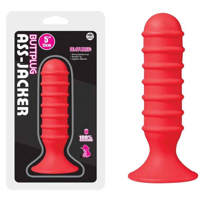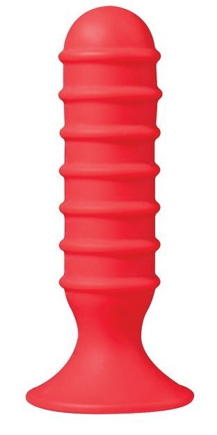 Анальный плаг из гигиеничного силикона красного цвета. Имеет ограничительное основание - присоску, ствол покрыт объемными кольцами для выраженного массажа. Рабочая длина - 13 см.