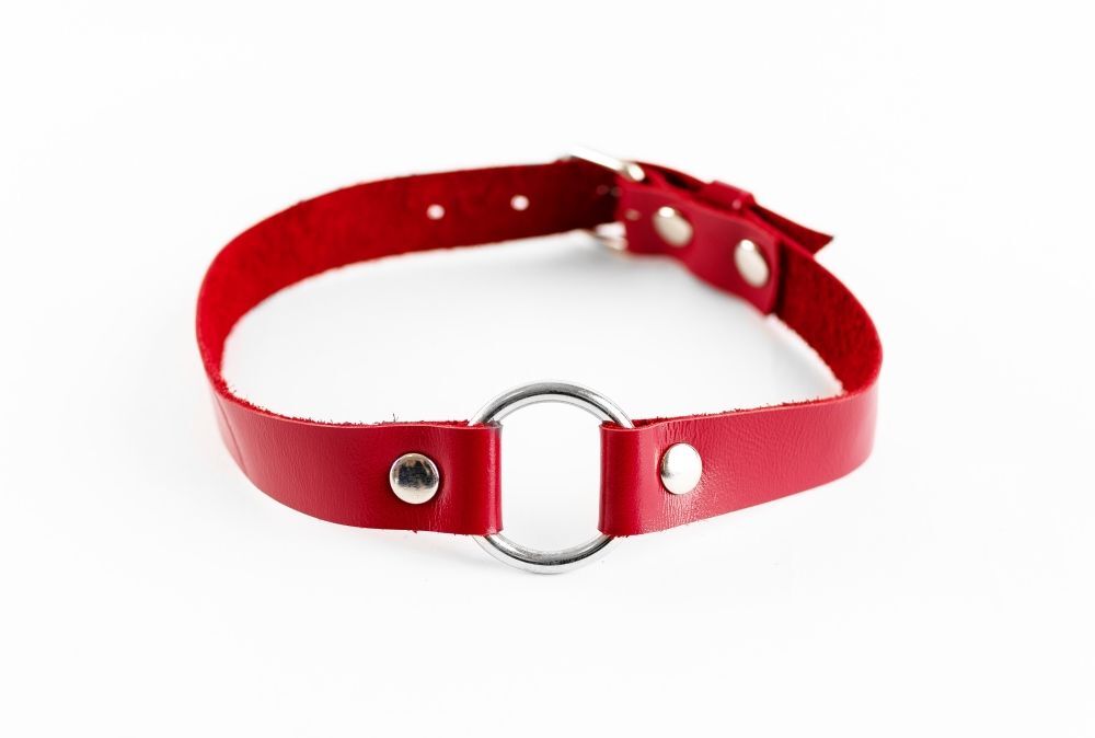 Элегантный чокер и натуральной кожи красного цвета, декорирован металлическим кольцом. Удобно регулируемая длина чокера идеально подойдет на обхват шеи от 30 до 40см. Нежная натуральная кожа очень комфортна в использовании. Яркий и сексуальный аксессуар, который подчеркнет вашу индивидуальность. Ширина ремня - 2 см. Диаметр кольца - 3 см.