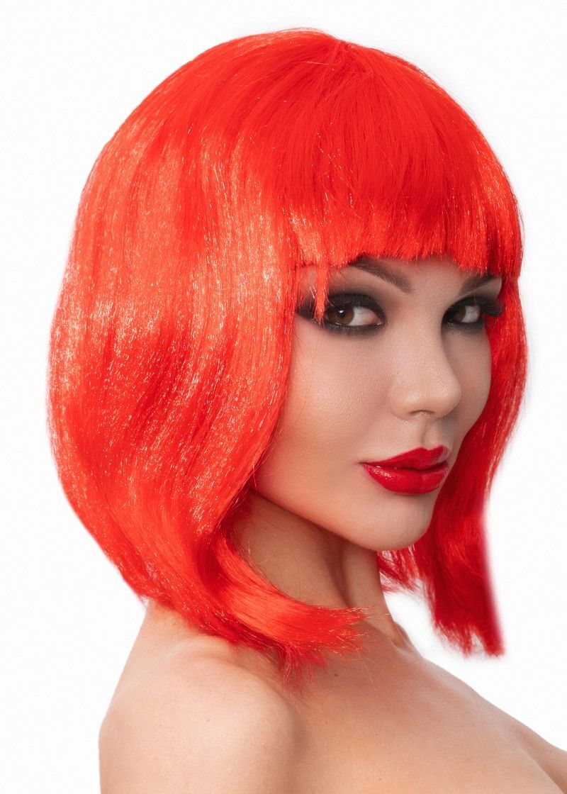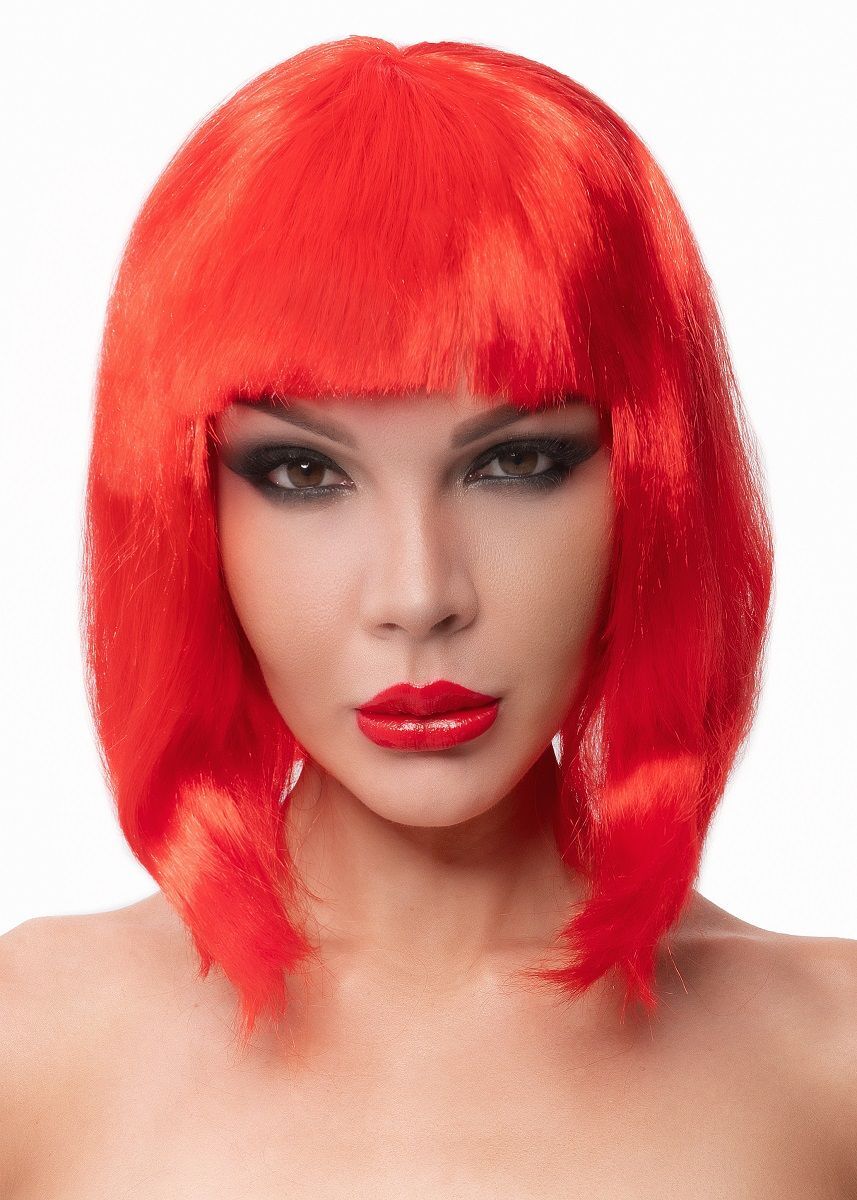 Красный парик-каре с челкой