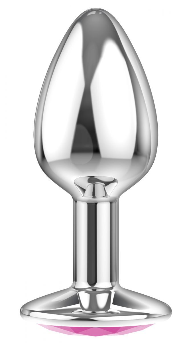 Малая серебристая анальная пробка Diamond Pink Sparkle Small с розовым кристаллом - 7 см.
