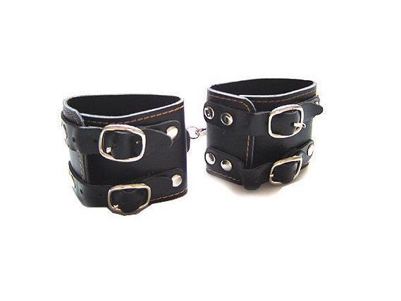 Для любителей жестких игр с ролевыми принадлежностями! Наденьте на вашего Раба эти манжеты, и ограничьте его движения, а сами пока можете насладиться собственным превосходством! Широкие манжеты изготовлены из кожзаменителя, по краям они отделаны контрастным швом, а также украшены хромированными заклёпками. Размер манжет регулируется двумя парами ремешков с пряжками на каждой из них. Манжеты соединяются маленьким карабинчиком, что превращает их в полноценные наручники или фиксаторы для ног. Ширина - 5,5 см.