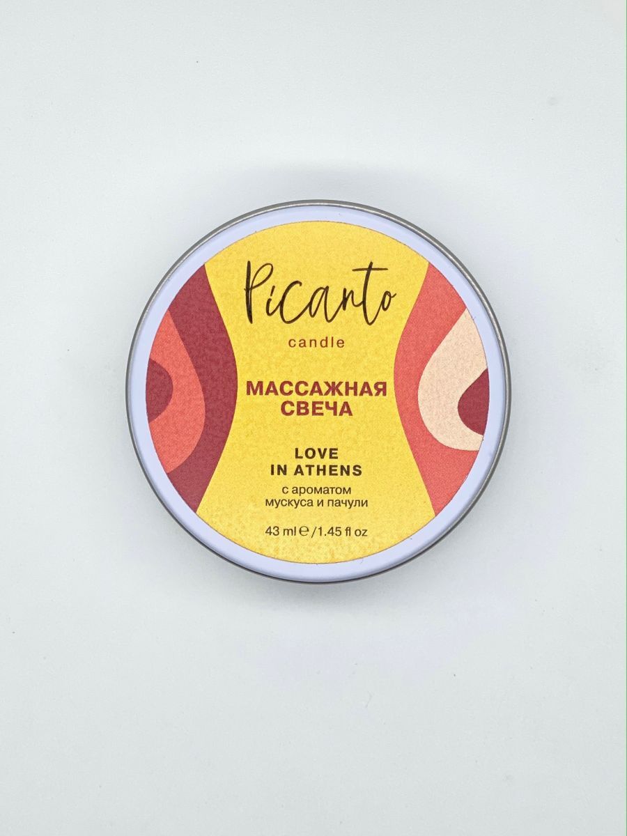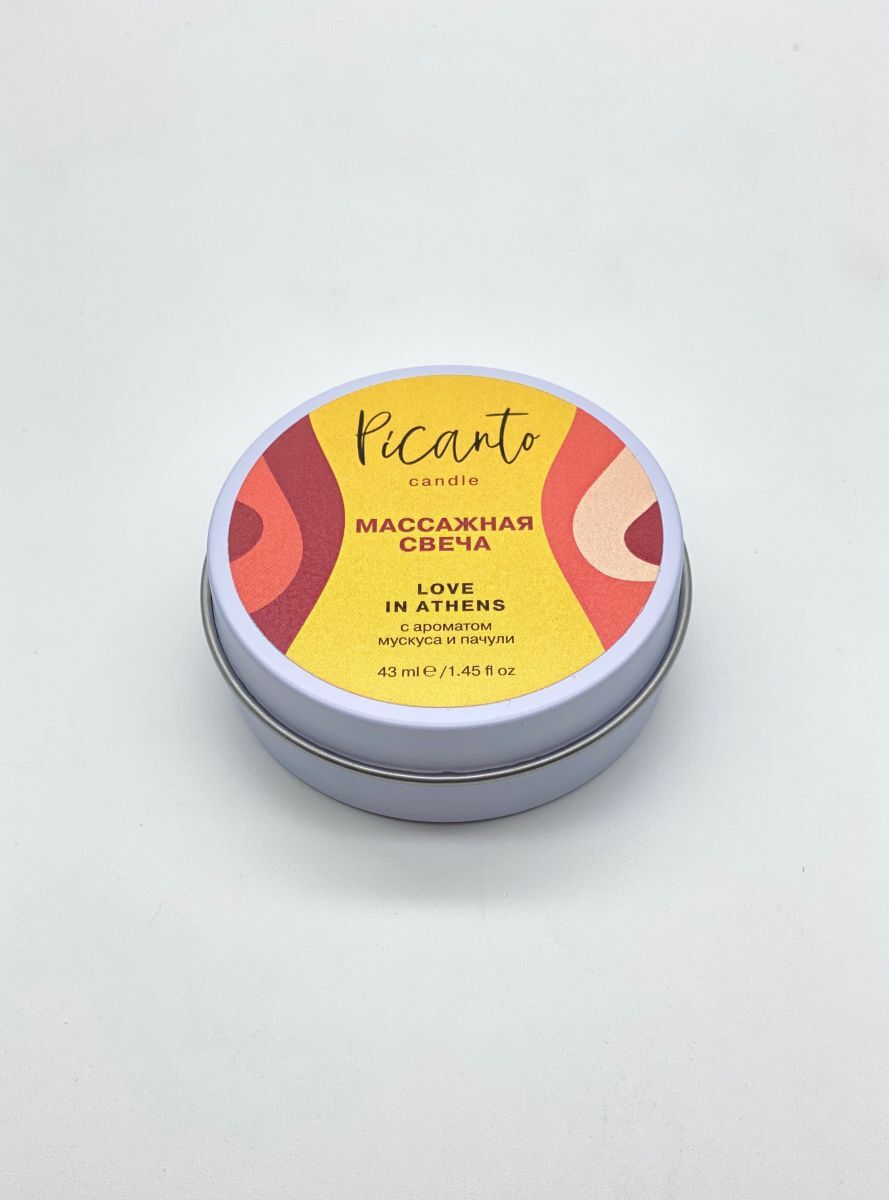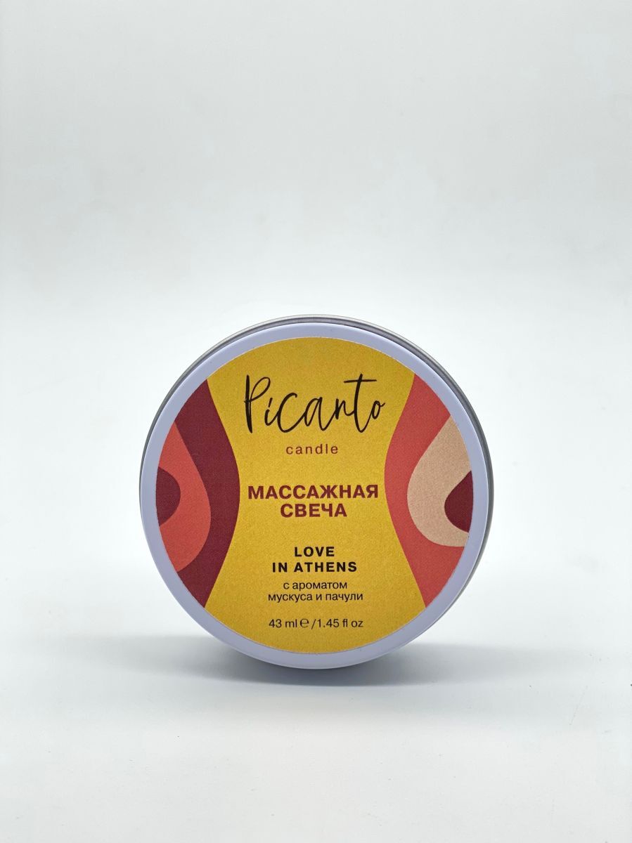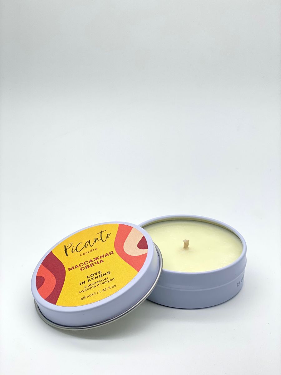 Массажная свеча Picanto Love in Athens с ароматом мускуса и пачули. Массажная свеча c ароматом с ароматом мускуса и пачули для чувственного эротического массажа! Масло разогревается, но не обжигает, благодаря содержанию соевого воска, температура плавления не превышает 40 градусов. При изготовлении свечи используются только натуральные компоненты и масла (масло жожоба, масло дерева ши, оливковое масло, кокосовое масло), поэтому она прекрасно увлажняет и заботится о вашей коже.