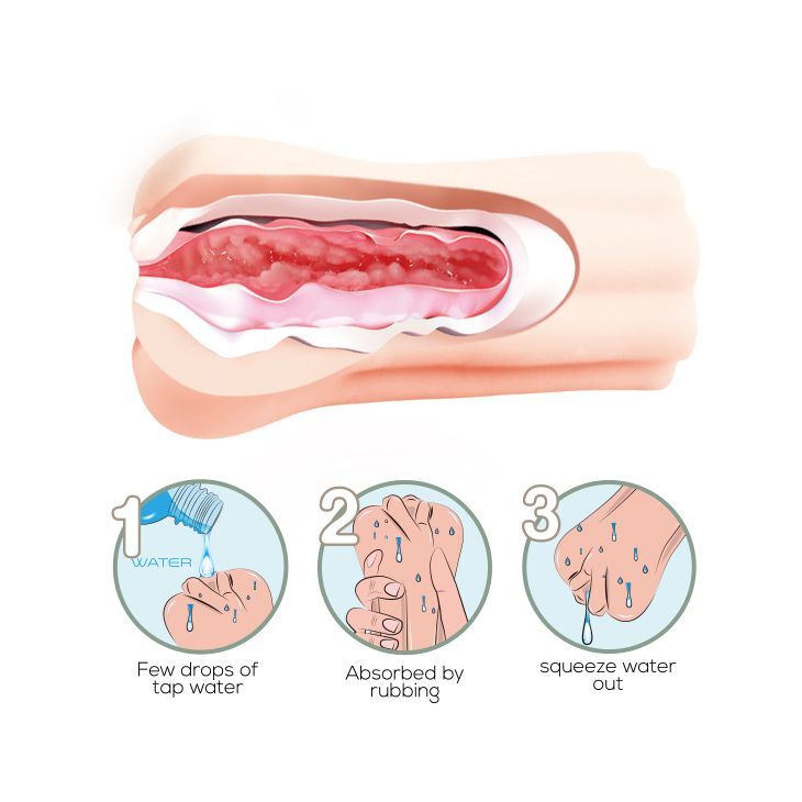 Мастурбатор с вагинальным отверстием изготовлен из особенного материала. Особенность заключается в том, что при добавлении нескольких капель воды в тоннель мастурбатора, материал принимает консистенцию скользящей, увлажняющей смазки. Имеет натуральный телесный цвет и очень правдоподобные внутренние складки, которые приносят ощущение полноценного сексуального контакта за счет плотного облегания ствола пениса.