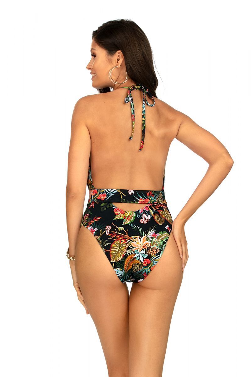 Совместный купальник. Лиф купальника мягкий, спинка открыта, тонкие бретели завязываются на шее сзади, спереди глубокое декольте, трусики слип с высокими проймами для ног. Купальник продублирован стрейч-подкладкой. Внимание: европейские размеры! См. размерную сетку производителя.