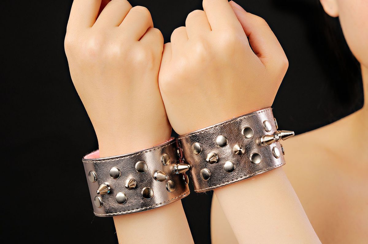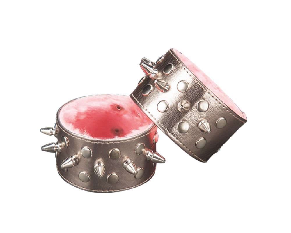Напульсники с шипами изготовлены из искусственной кожи и меха. Ширина напульсников - 4,5 см. Длина шипов - 1,2 см.