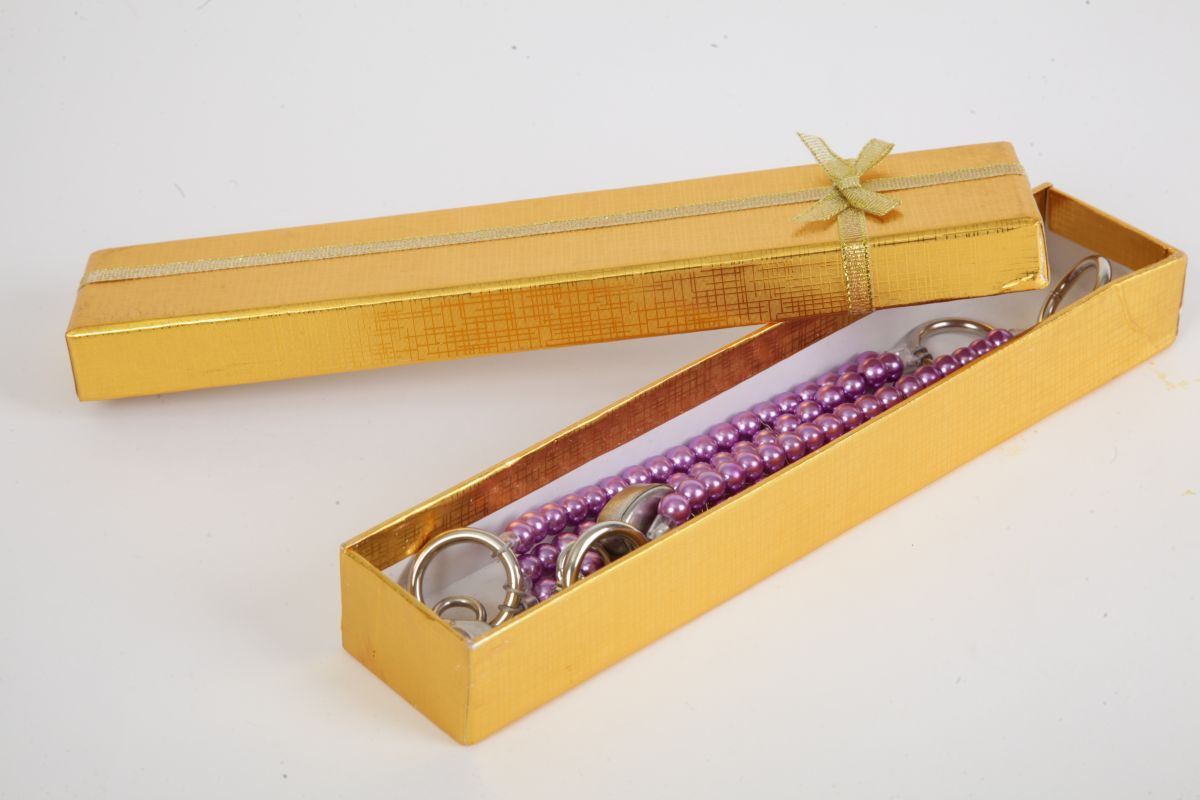 Фиолетовые наручники с тремя нитями из жемчуга . Закрываются на замочки в виде сердечек с индивидуальными ключиками. Наручники можно соединить небольшой цепочкой с карабинами. Упаковка - золотая подарочная коробка с бантом. Длина соединительной цепочки - 13 см. Длина наручников - 20 см., ширина - 2,5 см.