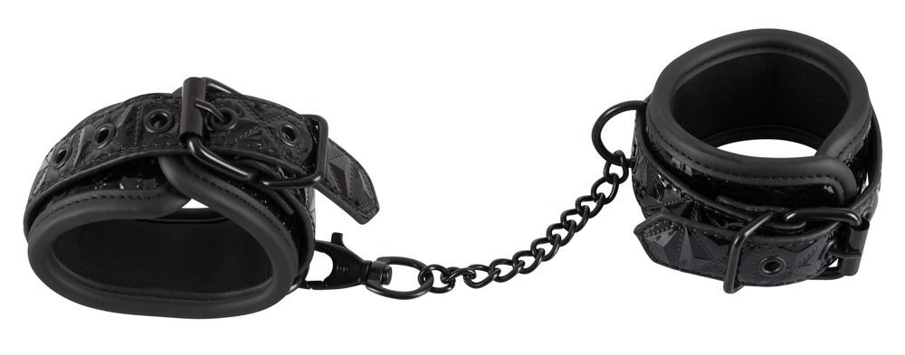 Наручники с геометрическим узором Bad Kitty Handcuffs. Ширина каждого браслета - 5,5 см. Обхват регулируется от 22 до 30 см.