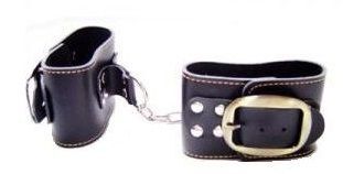 Красивый, брутальный и функциональный одновременно атрибут, который понравится опытным любителям игр БДСМ. Подчеркните ролевую принадлежность своего Раба этими наручниками – вам понравится и внешний вид партнера, и его ограниченность в движениях! Широкие манжеты изготовлены из качественного кожзама. Они соединяются хромированной цепочкой, что превращает их в наручники или фиксаторы для ног. Манжеты декорированы ремнями с пряжками, с помощью которых они и регулируются по размеру. Ширина - 6 см.