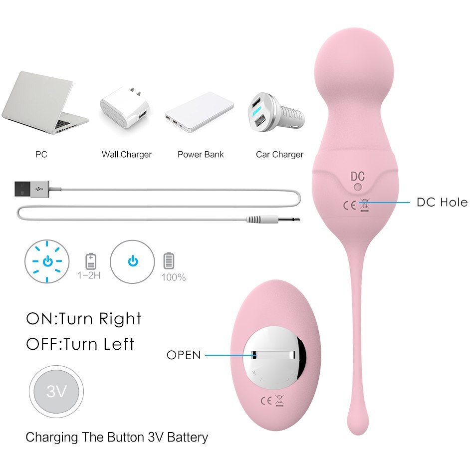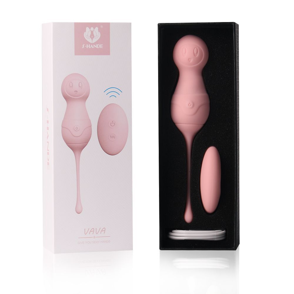 Нежно-розовые вагинальные шарики VAVA с пультом ДУ. Выполнены из силикона. Имеют 9 режимов вибрации.